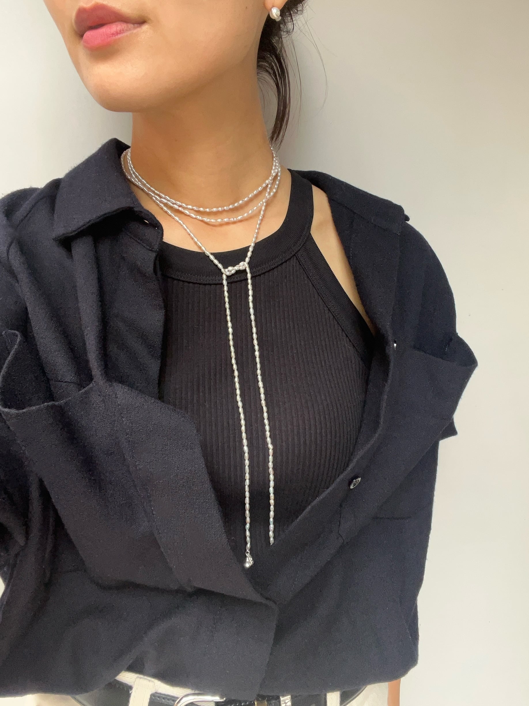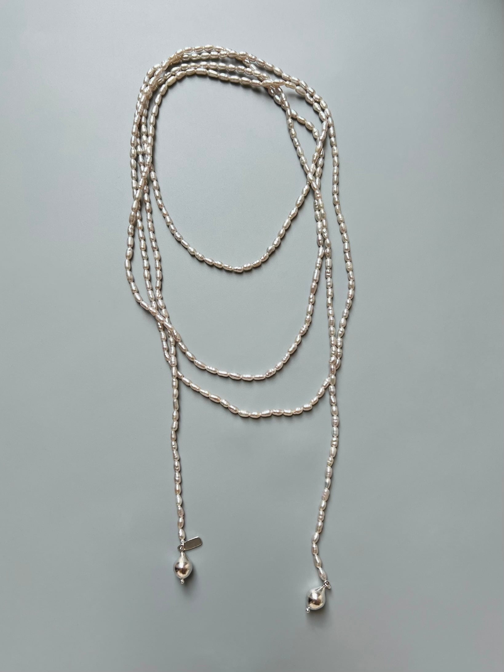 ライスパールを贅沢に使った全長160cmのスーパーロングネックレスです。